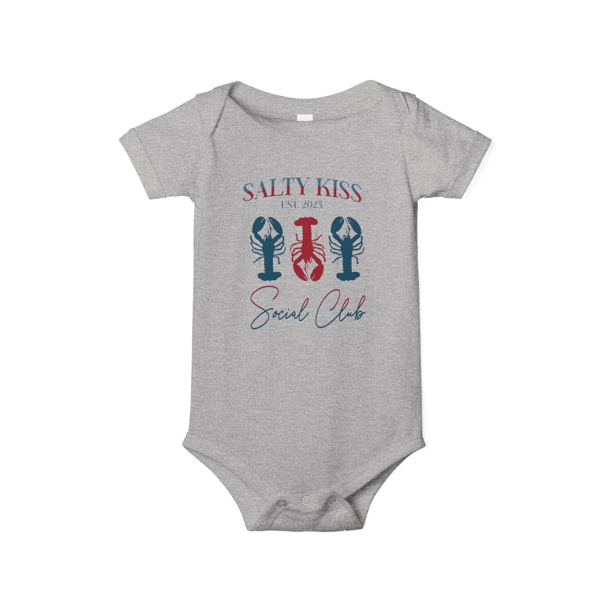 This one-piece packs lobster-level boldness in pint-sized form. Featuring a cheeky red-and-blue design, it’s perfect for moonlit crab walks, sea breeze snuggles, and ruling the picnic blanket with pure cuteness. Made from ultra-soft, Airlume combed cotton, it keeps things cozy while your little one makes waves—without ever leaving the sand. Summer nights just got pinch-perfect.
