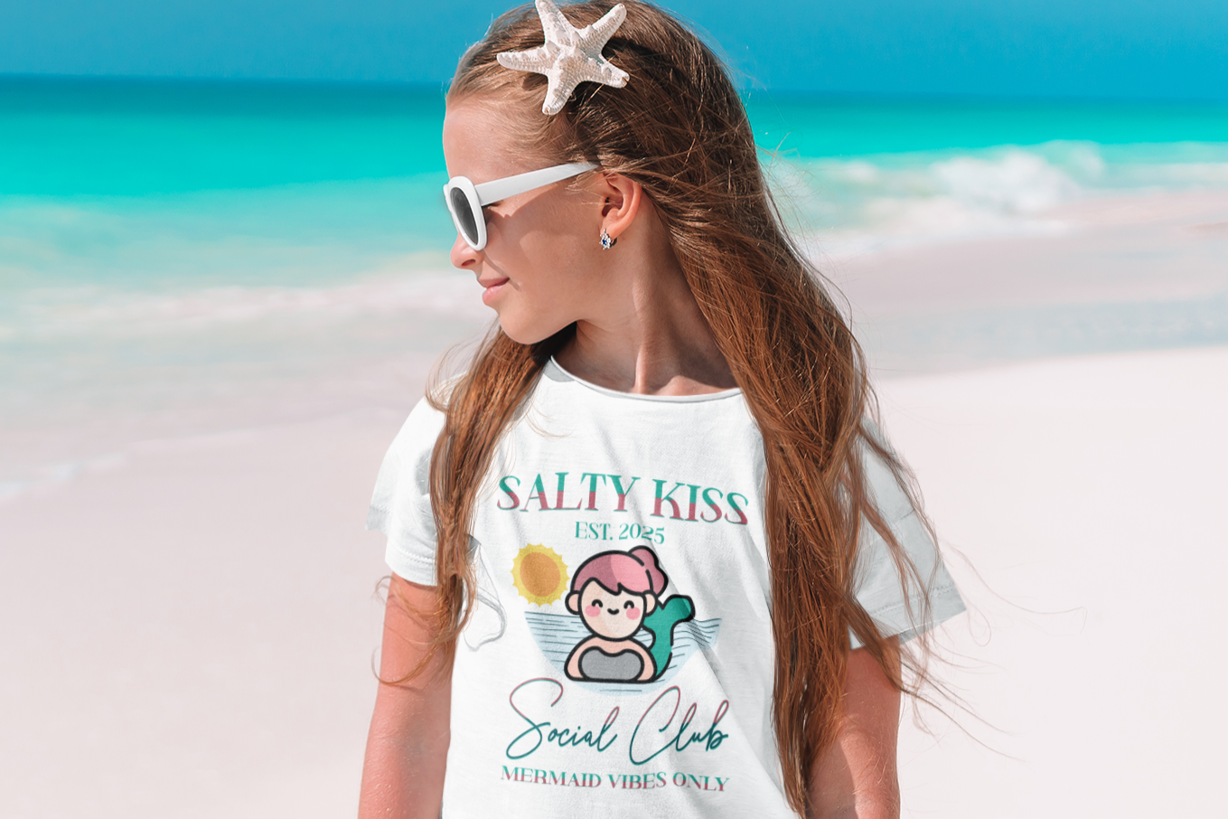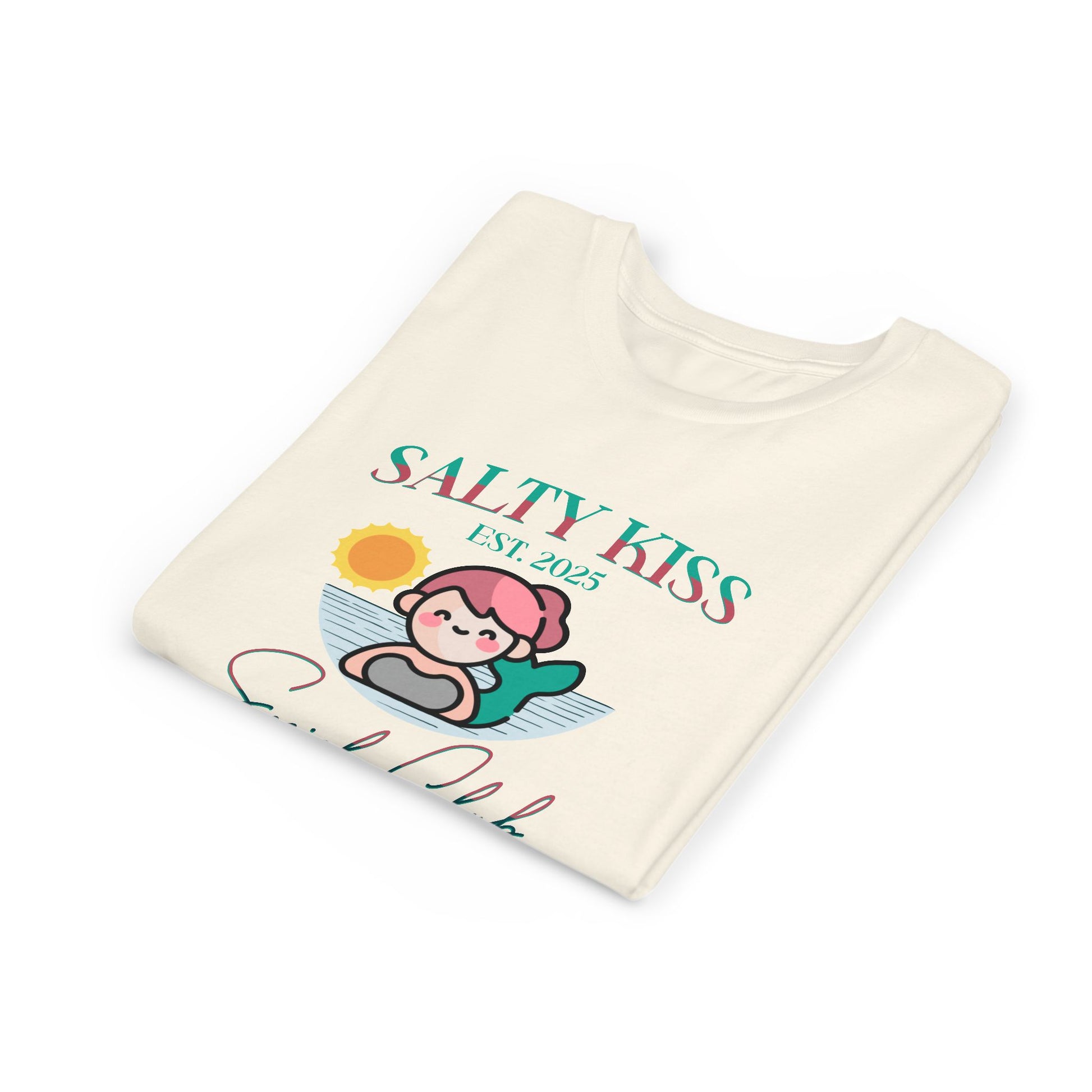 Mermaid Vibes Only. This youth tee is soft, splashy, and full of mischief—perfect for beach days, backyard adventures, or lounging like a lagoon queen. With cheerful graphics and major comfort points, it’s a wearable daydream made sustainably.