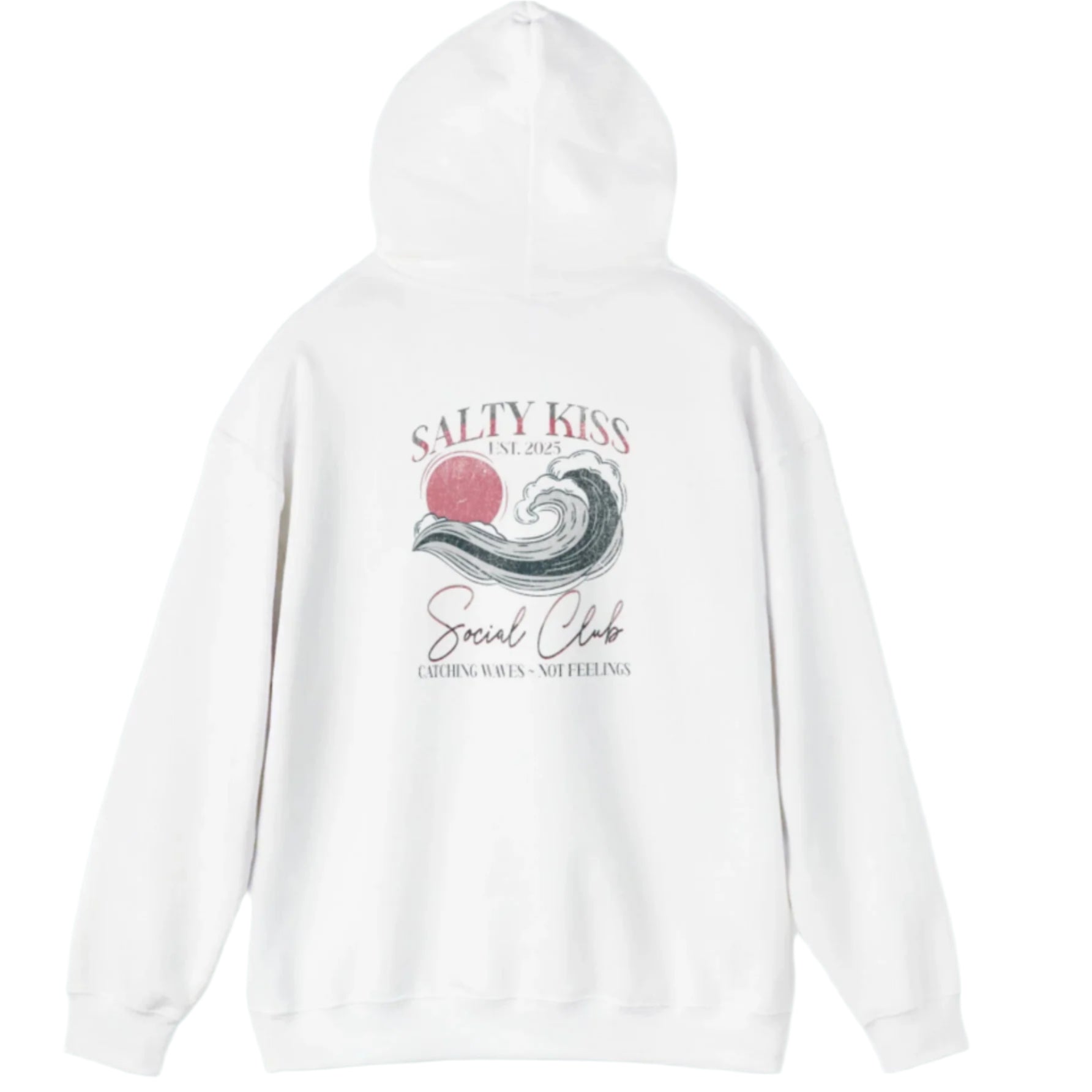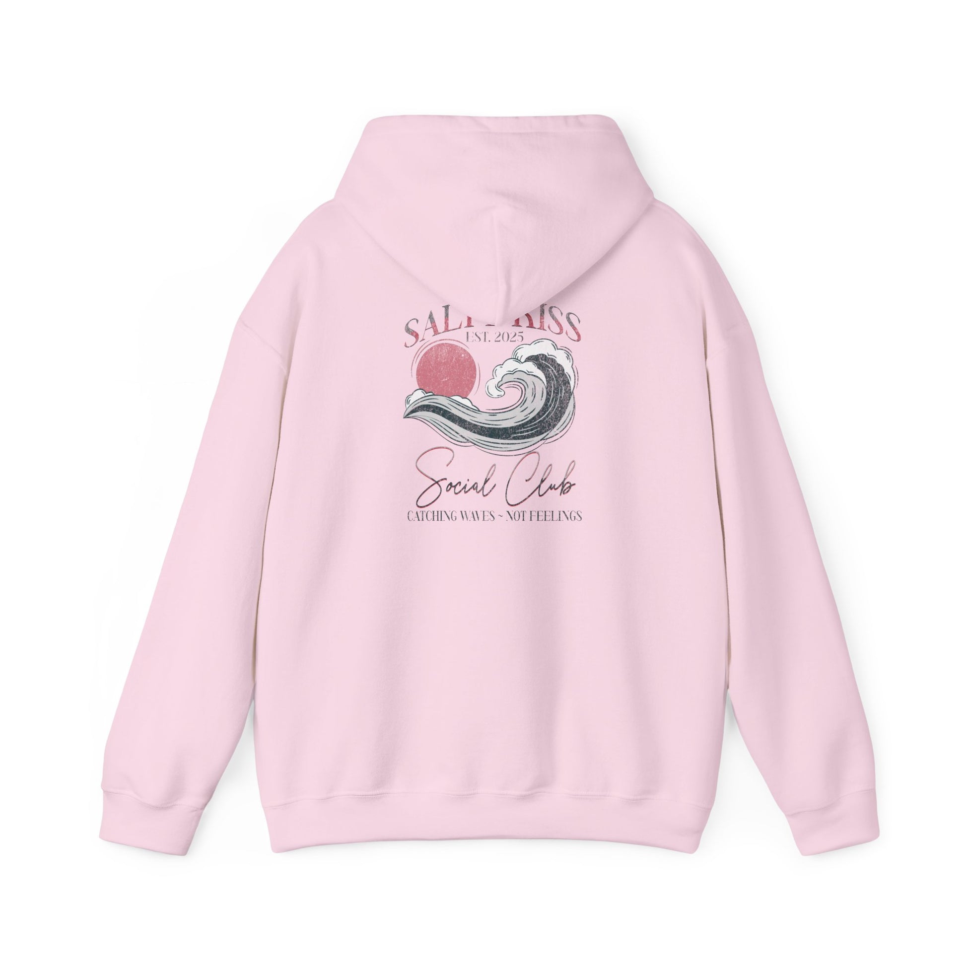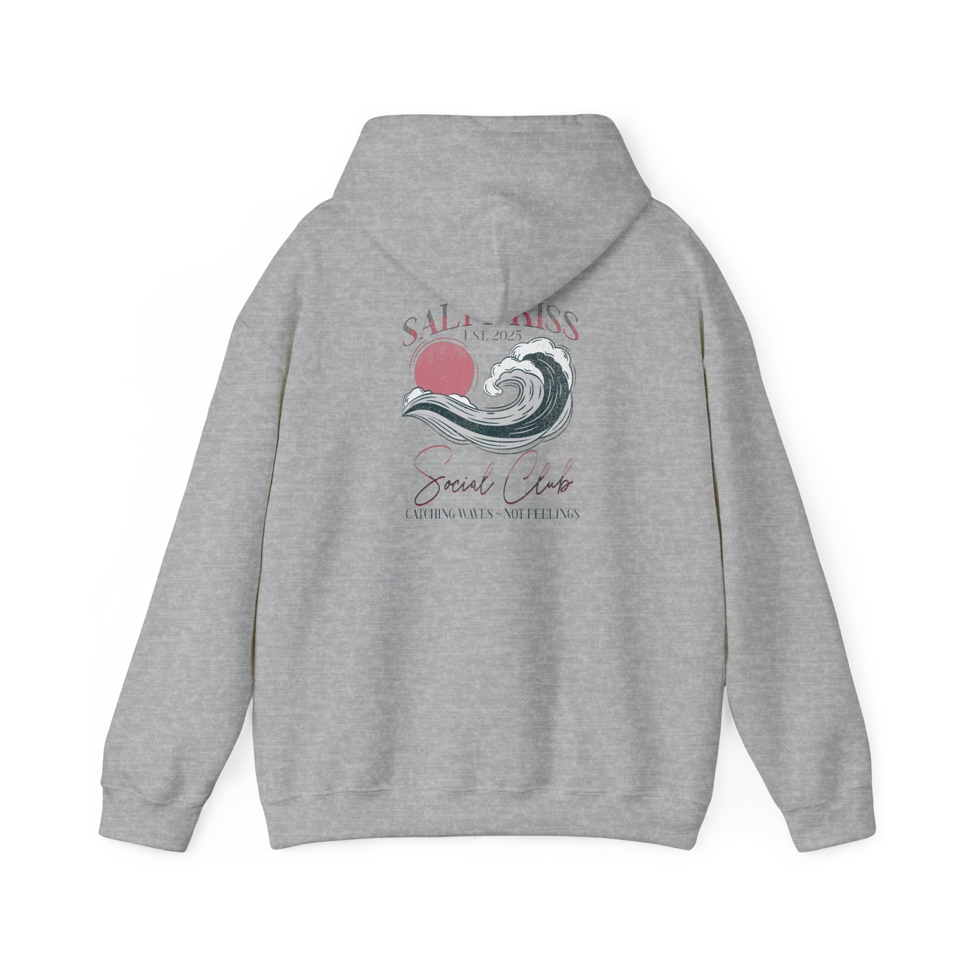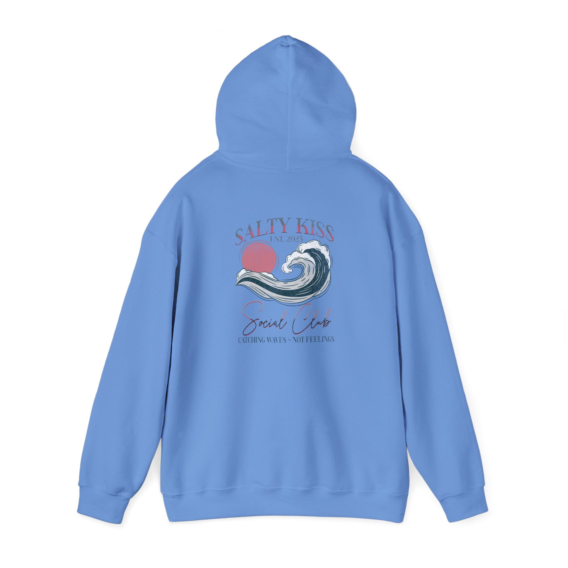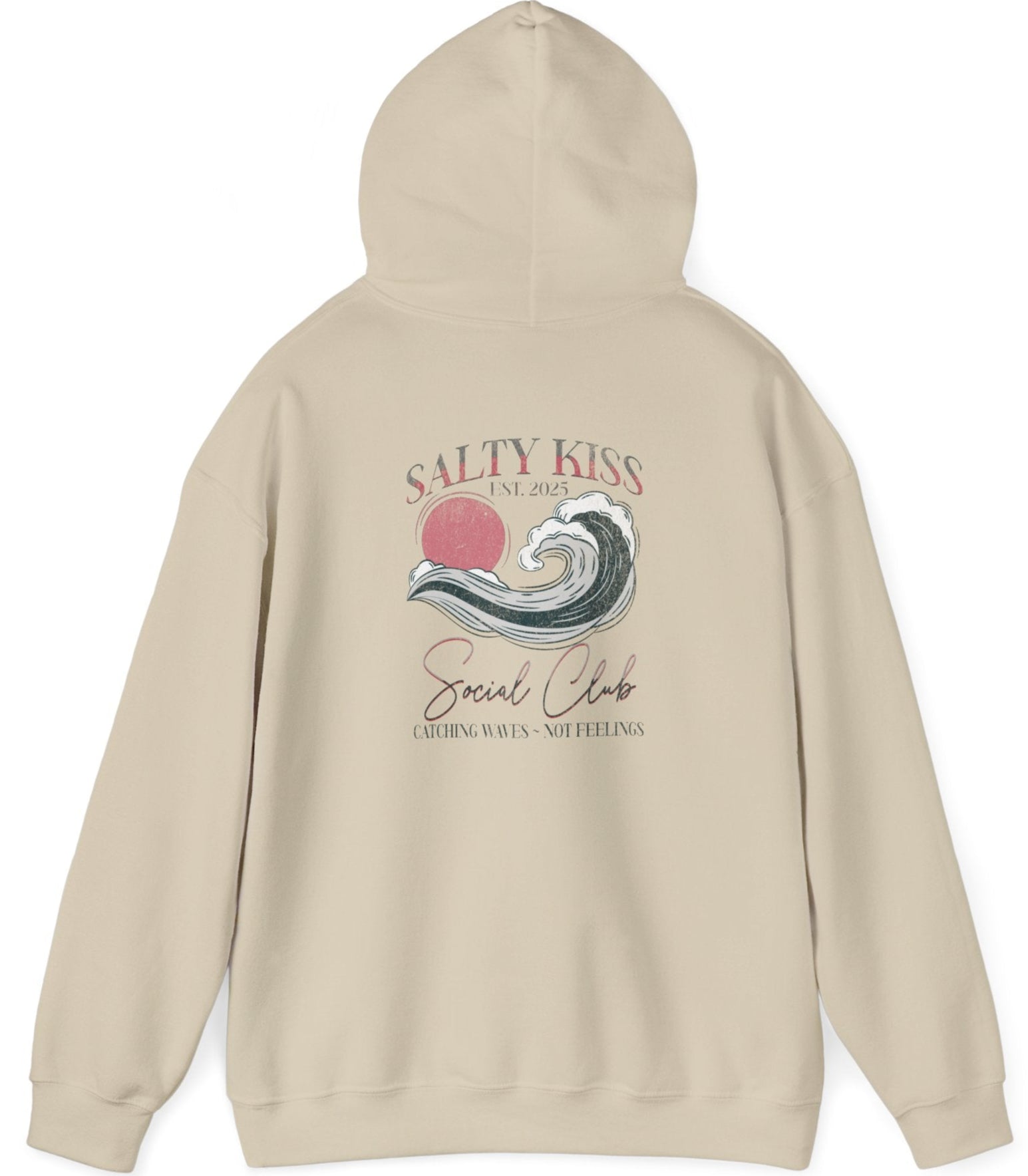 Salty Kiss Social Club - Surf's Up Catching Waves not Feelings! Introducing the perfect addition to your wardrobe: a relaxed and stylish unisex garment-dyed sweatshirt that exudes a laid-back vibe. Soft to the touch and beautifully colored, this sweatshirt is ideal for casual outings, weekend beach adventures, summer or spring break, gatherings with friends. Targeted towards those who appreciate comfort, style, and sustainability.