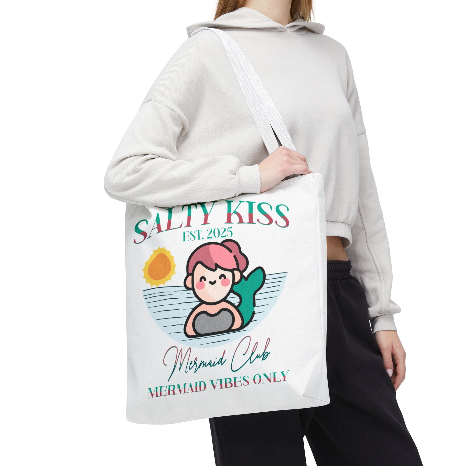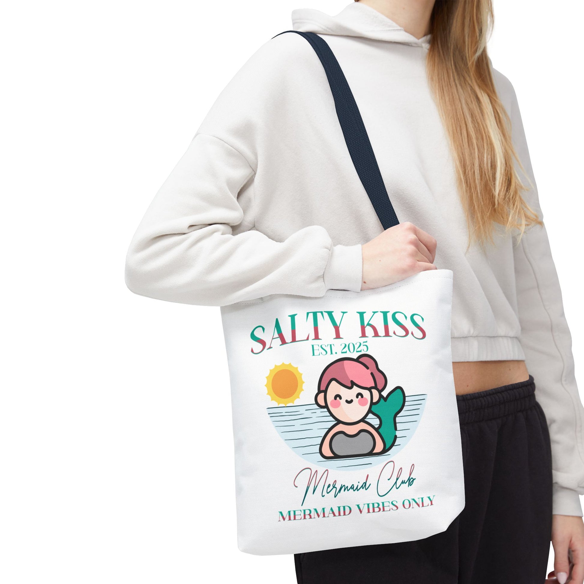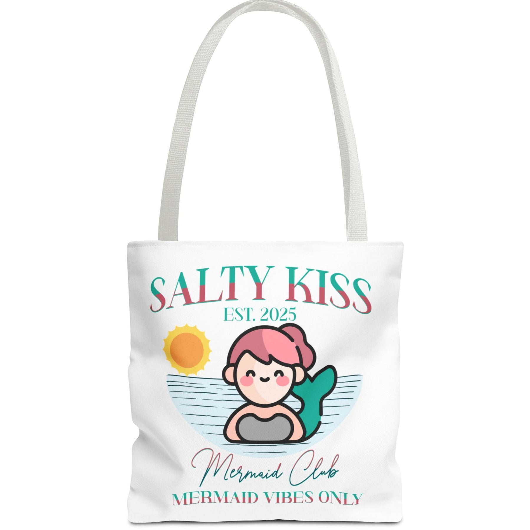 Introducing our Mermaid Vibes Tote Bag, designed to elevate your little one's summer fun! This stylish accessory exudes a fresh vibe, perfect for those who love to express their individuality. Its unique design makes it an ideal companion for beach trips, casual outings or shopping. It’s the perfect choice for summer celebrations or just as a fun tote to carry your child's essentials while running errands. This tote is perfect for anyone who appreciates a blend of cute style and functionality, making it a hit with kids who love a Mermaid Vibe to add a pop of personality to their accessories.