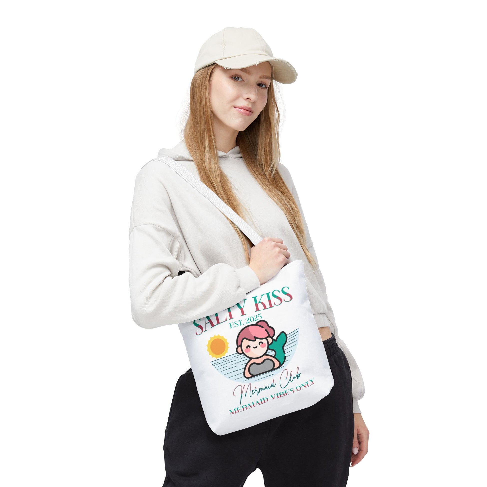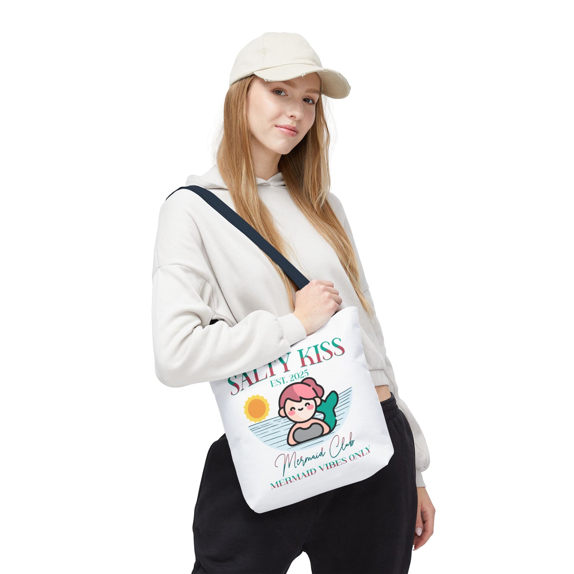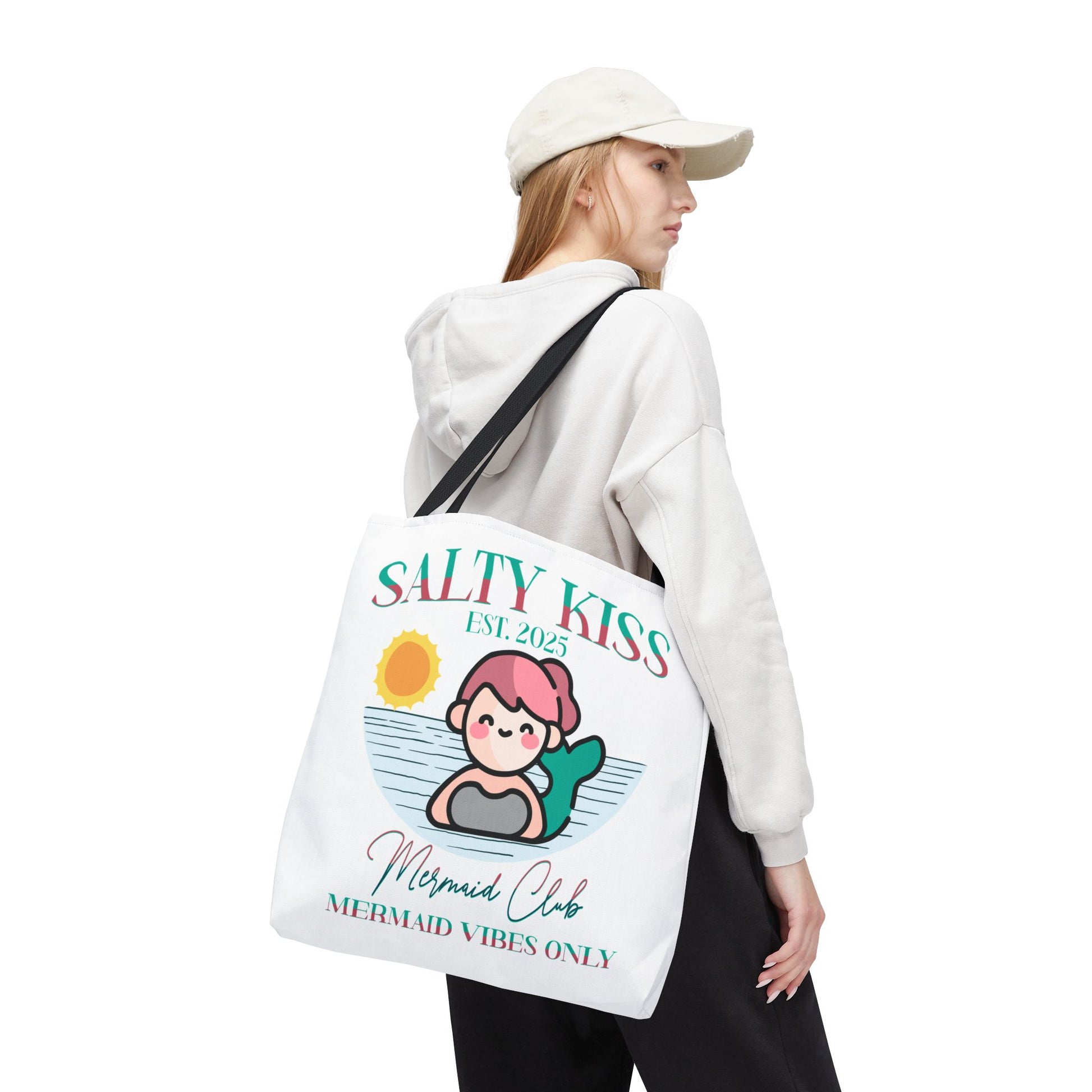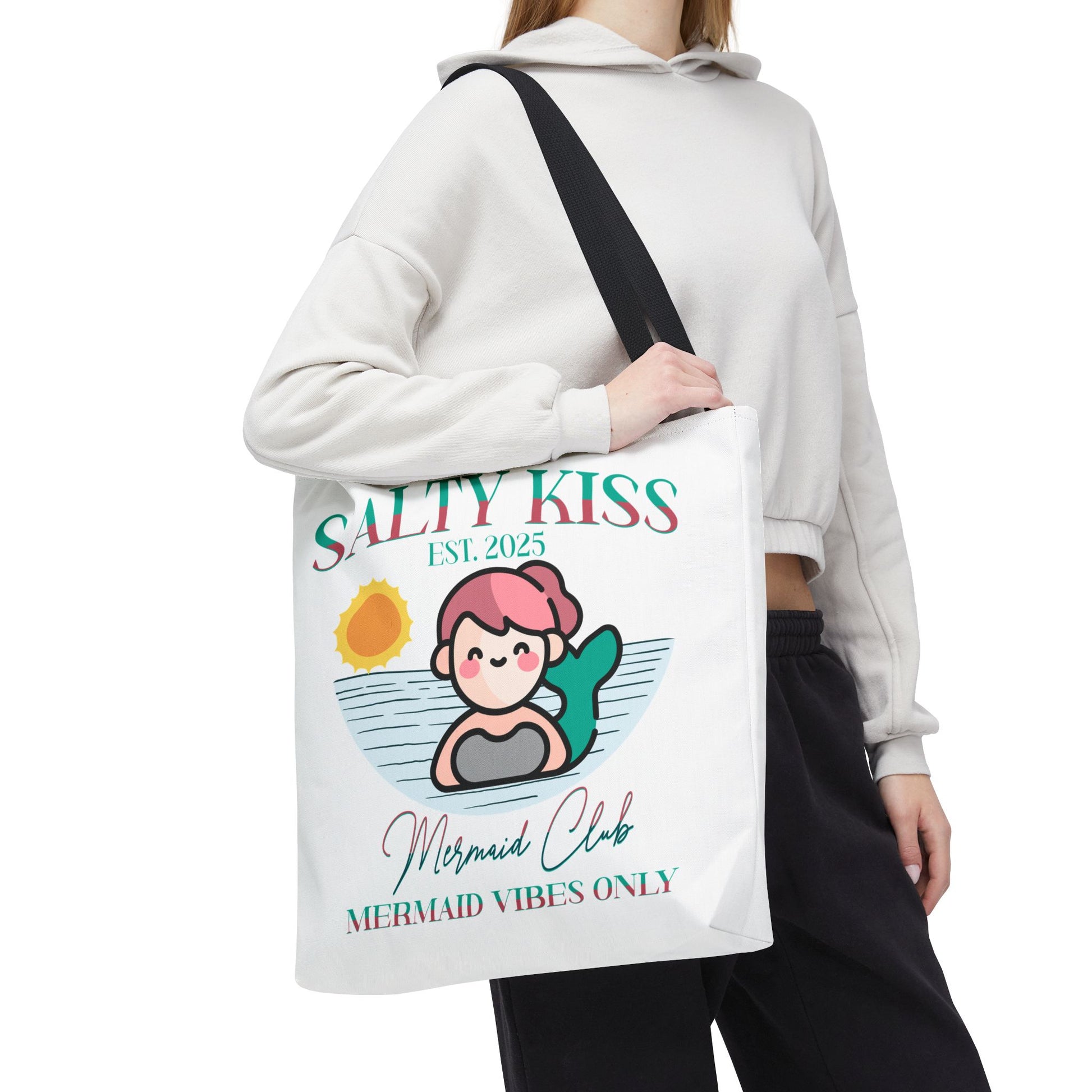 Introducing our Mermaid Vibes Tote Bag, designed to elevate your little one's summer fun! This stylish accessory exudes a fresh vibe, perfect for those who love to express their individuality. Its unique design makes it an ideal companion for beach trips, casual outings or shopping. It’s the perfect choice for summer celebrations or just as a fun tote to carry your child's essentials while running errands. This tote is perfect for anyone who appreciates a blend of cute style and functionality, making it a hit with kids who love a Mermaid Vibe to add a pop of personality to their accessories.