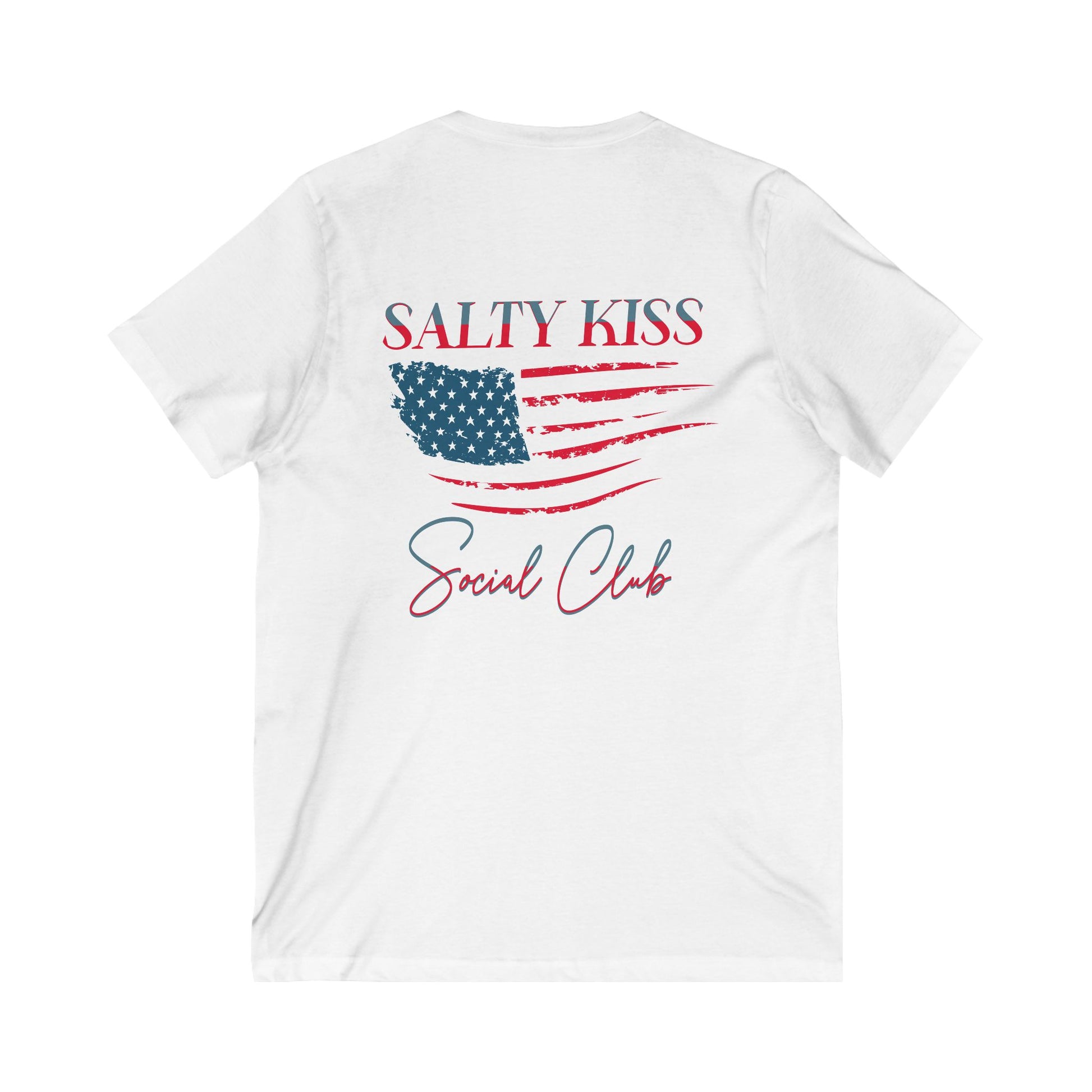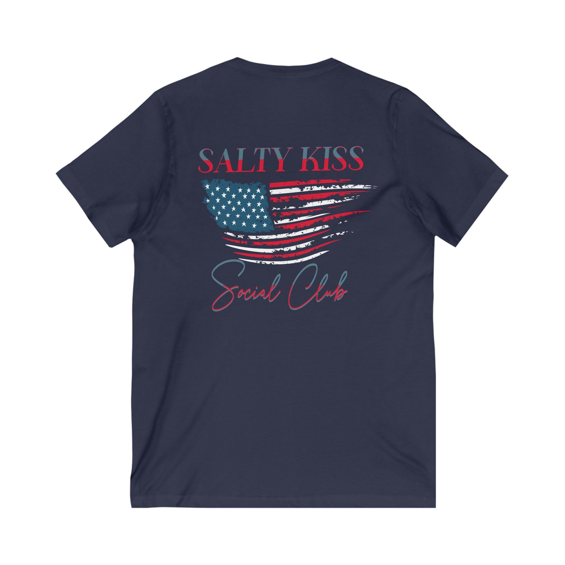 Stylish summer celebration Unisex Jersey Short Sleeve V-Neck, perfect for adding a trendy touch to any wardrobe! This tee is crafted from lightweight fabric that makes it a comfortable choice for every season. The vibrant design captures a laid-back, summer vibe that’s ideal for the beach, BBQ's, casual outings or gatherings with friends.